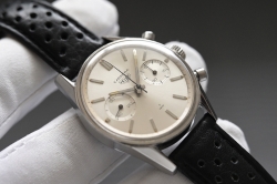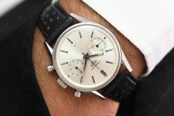 A stunning vintage Heuer Carrera chronograph — a timeless piece that perfectly captures the elegance and precision of classic Swiss watchmaking. This example features a beautiful silver sunburst dial with minimalist design cues that defined the golden age of racing chronographs. The twin sub-dials, clean applied hour markers, and slim baton hands exude understated sophistication, while the original Heuer shield logo proudly reflects the brand’s racing heritage.