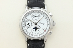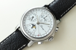 Fonctions : Jour, date, mois, sous-cadran 24 heures, indicateur de phase de lune et chronographe