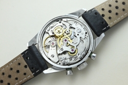 Chronographe bicompax animé par le mouvement manuel Valjoux 7730.
